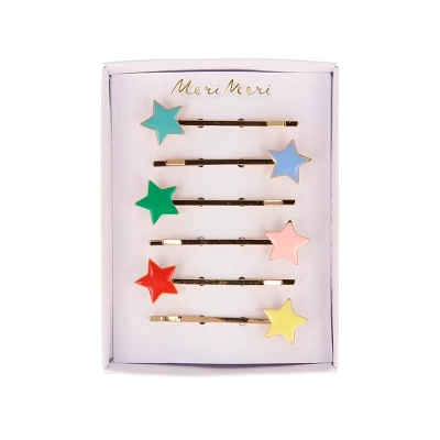 Make any hair style look out-of-this-world with these sensational star hair slides. The stars are crafted from colorful enamel, perched on gold tone hair slides.