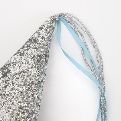 - The sparkly silver hat is made from a glittery fabric and felt and clips on and off