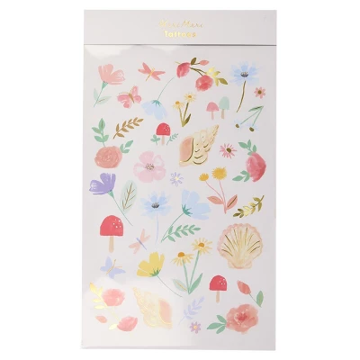 If you’re looking for temporary tattoos that are really delightful, then you’ll love this floral set. It features beautiful blooms, butterflies and mushrooms, with eye-catching gold foil details