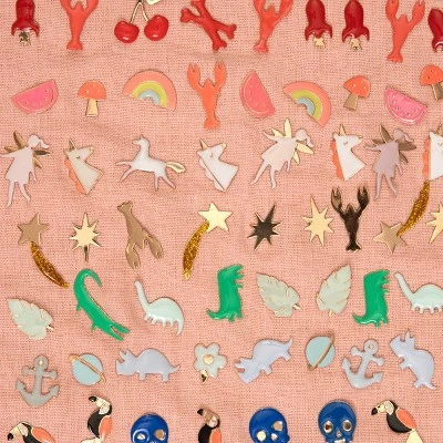 This set of three fabulous enamel pins, on a gilt brass butterfly clasp, are the ideal way to add extra color and interest to your outfits. Go wild with these jungle-themed alligator, toucan and leaf pins. Enamel on gilt brass. Butterfly clasp. Set of 3