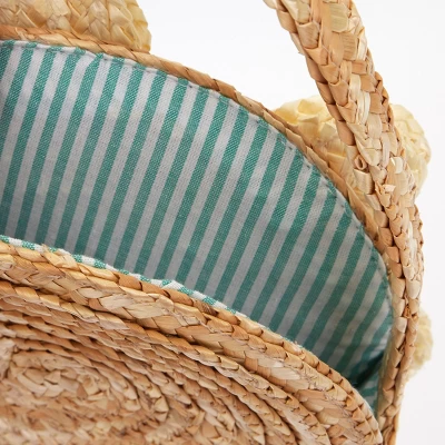 This wonderful White Daisy straw bag is the perfect accessory for someone who loves a floral touch. The bag is crafted from seagrass, with a polycotton lining, and has a stylish and fun yellow raffia pompom in the center of the daisy. Lined woven straw. Tassel & neon pompom detail. Product dimensions: 7.5 x 10.5 x 2.75 inches